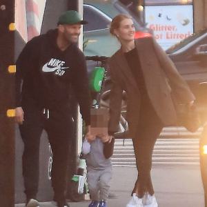 Rosie Huntington-Whiteley, 35, and Jason Statham, 55, take son Jack, 21 months, for a sun-soaked stroll in Beverly Hills