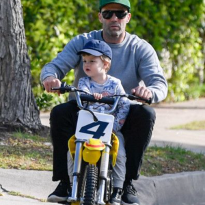 Fast and Furious actor Jason Statham teaches his son Jack his tricks of the trade as he takes him on a mini motorbike ride in LA