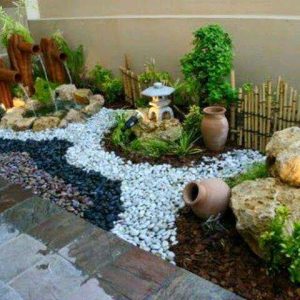 Add a relaxing corner to leave by using a small area next to the house along the path, alternating stone blocks and sprinkled with white stones. Make the house and…