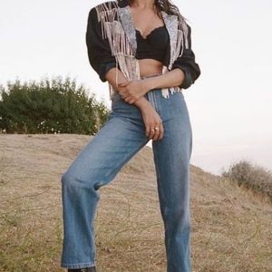 Selena Gomez is a Texas girl at heart in country chic fringe jacket over a bralette during outdoorsy photo-shoot