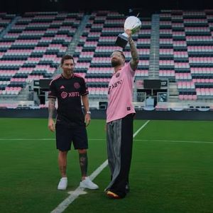 Messi’s shines in Colombian rapper Maluma’s music video as the two are clutching the Inter Miami trophy