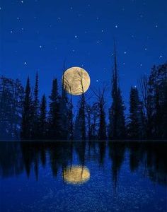 In the embrace of night, a symphony of natural beauty unfolds as the trees cast their graceful silhouettes upon the tranquil waters of a river. The moonlight weaves its…