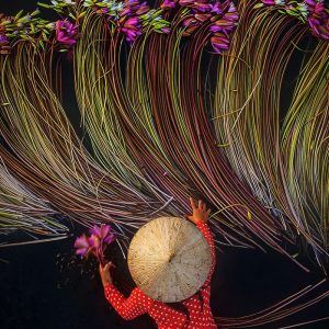 Take a glimpse into the Mekong Delta: farmers harvesting water lilies, a captivating scene that celebrates the harmony between nature and agriculture.vouyen