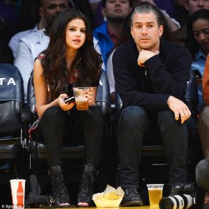 Selena Gomez laughs and cheers with her much older agent as they sit courtside to watch the Lakers