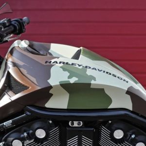La cámara captura imágenes impresionantes Harley-Davidson V-Rod ‘Camu’ de Allvrods: vehículo único e impresionante inspirado en el diseño de camuflaje militar