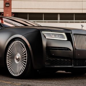Sleek Elegance: Matte-Black Rolls-Royce Ghost on Large Wheels Strikes the Perfect Balance