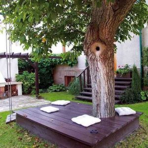 20 Beautiful Tree Landscaping With Deck And Furniture Ideas