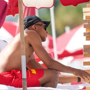 Kylian Mbappe is still taking advantage of his summer vacation as he unwinds and plays Jenga with a female buddy in Miami.