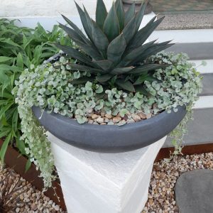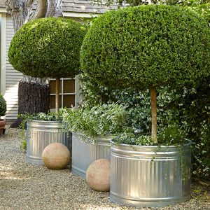 Just a handful of containers makes a big impact in a small space. Flanking the sidewalk with topiaries in containers calls attention to the front door. Take a walk in…