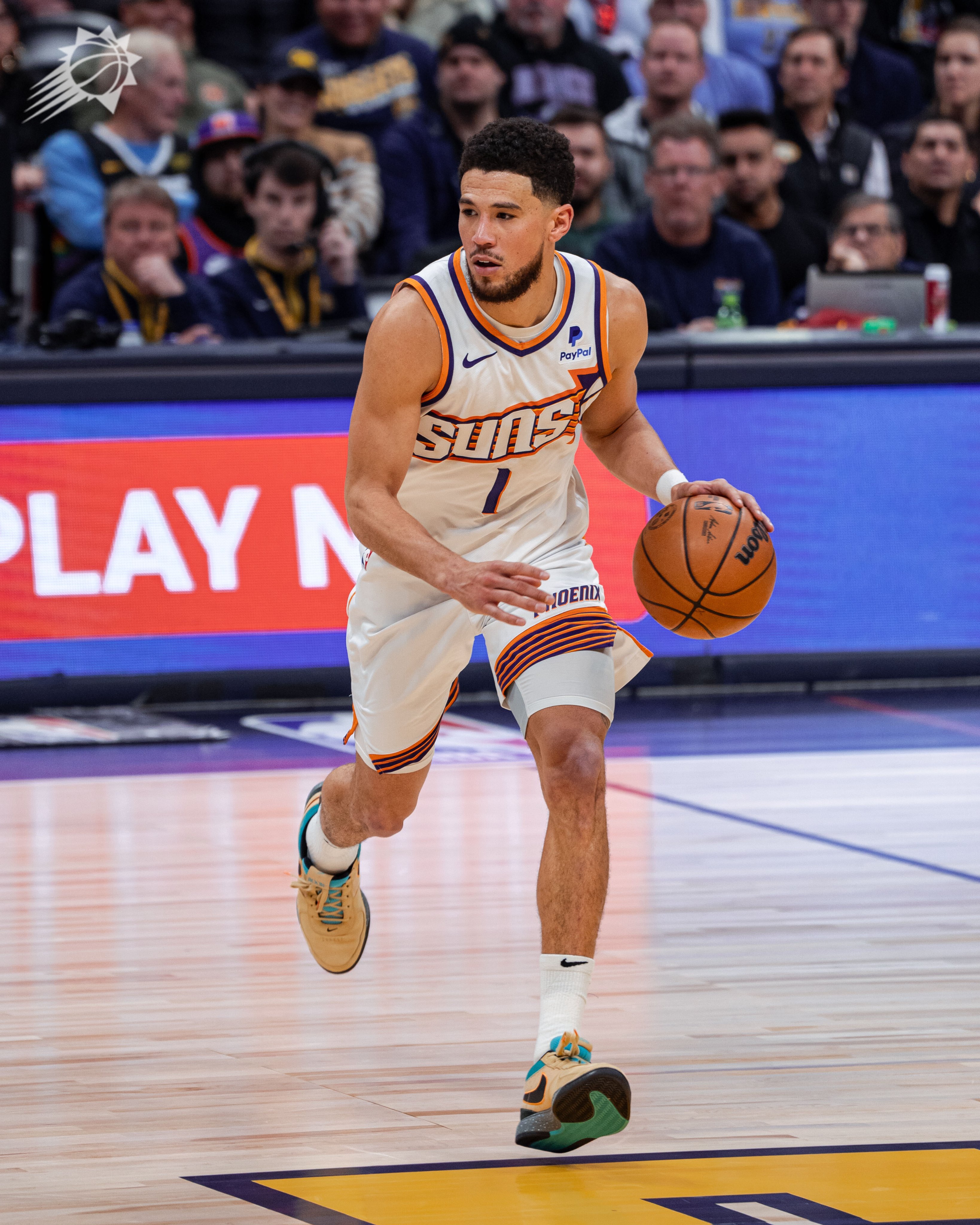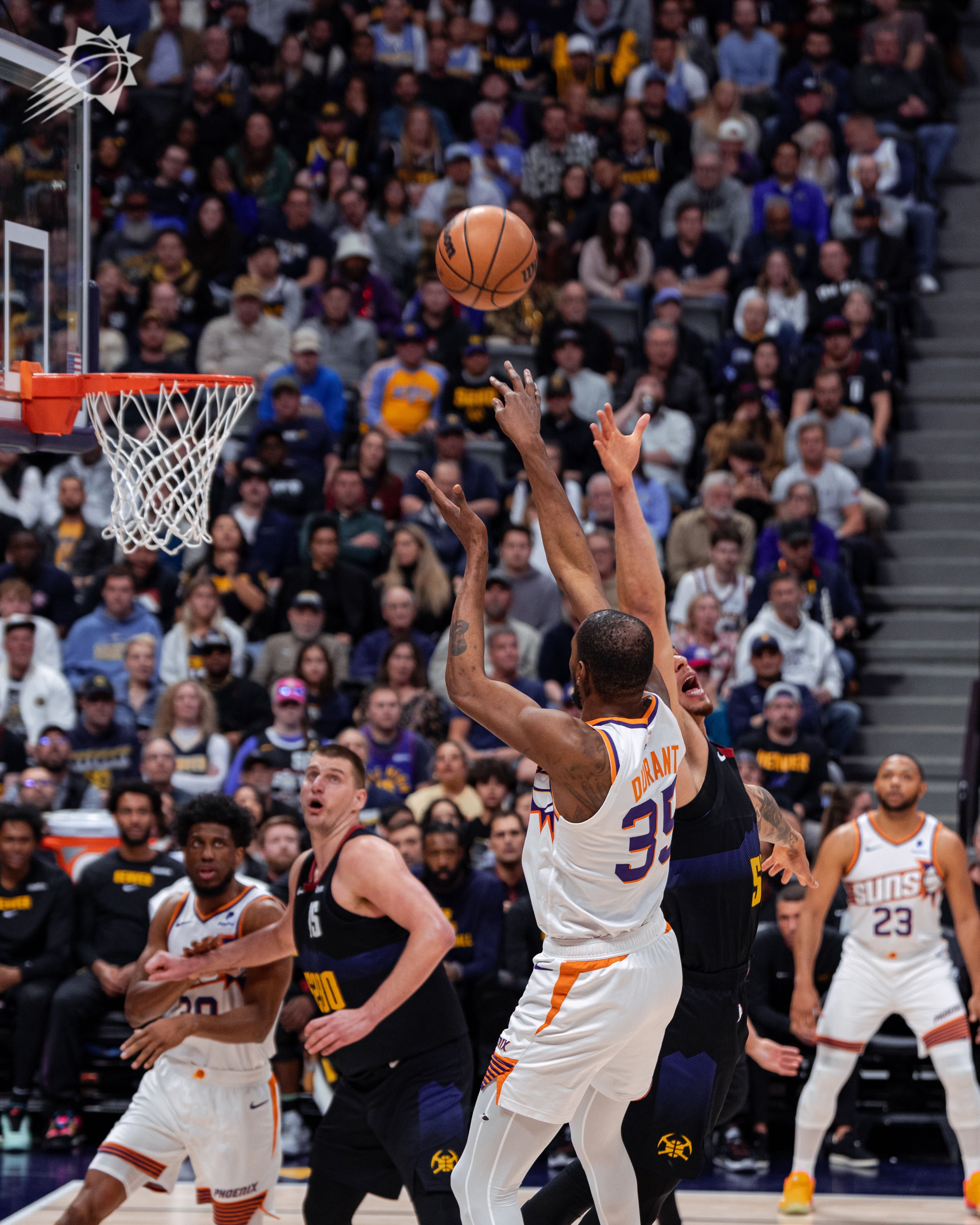 The Suns made five of their first six shots from beyond the arc to get out to a fast start. After a deep three-pointer by Grayson Allen forced a Denver timeout, they surged out to a 19–14 lead.